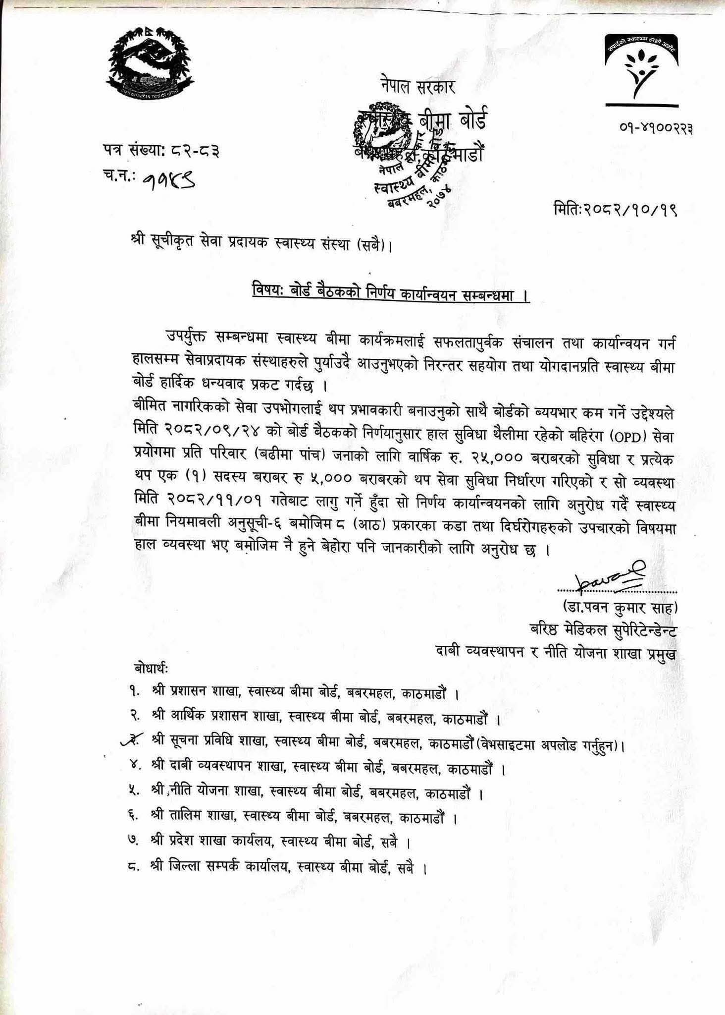 बिमा बोर्ड बैठकको निर्णय कार्यान्यन सम्बन्धमा